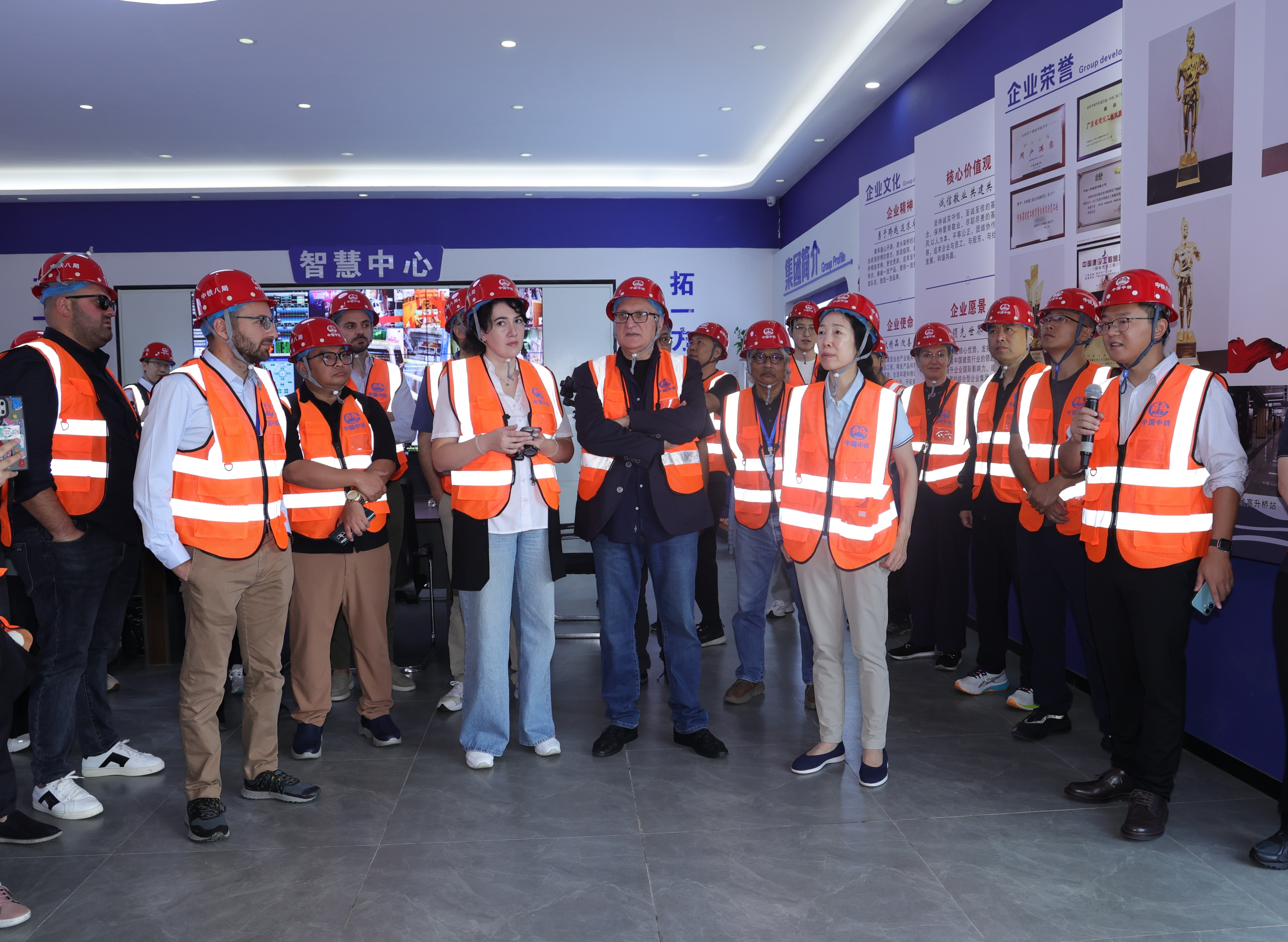项目部坚持技术先行、创新驱动,全力攻克施工难题、推动建造方式升级。在施工过程中,充分运用智能建造技术,在桂花站集成应用180吨智能龙门吊、一体化拼装台车、高精度测量机器人等先进智能工装;创新构建“智、微、活、严”测量控制体系与“测、控、调、验”闭环精度控制体系,实现装配构件毫米级高效精准拼装,大幅提升施工工效。技术攻关与科研方面,全年编制论证施工方案49项,针对地连墙成槽质量等难点成立QC小组专项攻坚,将检测合格率从80%提升至100%,以科技创新赋能生产提质。凭借全预制装配式车站施工的优异表现,项目部高质量承办了“中国中铁装配式智能建造观摩交流会”,向全系统展示智能建造成套技术与管理成果,获评“可复制、可推广的示范样板”;同月,中国中铁地铁创新发展国际学术交流会组织40余名中外嘉宾到桂花站观摩交流,充分展现了企业的良好形象。
